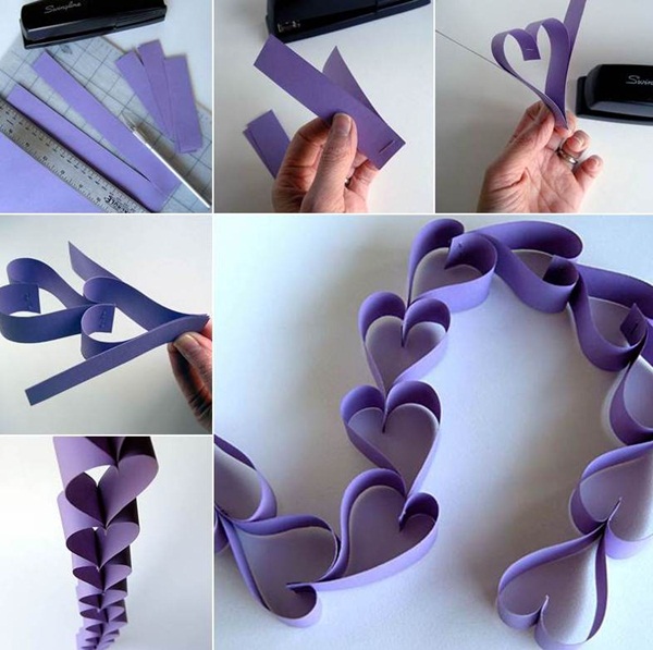 Los empavesados son un elemento básico de las celebraciones. pero seguir empavesados aburridos similares no es la solución. esta vez hagamos un tipo diferente de empavesados en forma de corazón. Recorta tiras de papel de colores para hacer estos empavesados. Comience sellando los empavesados en la base y luego forme un corazón usándolos. Luego, nuevamente agregue tiras de papel a ambos lados del corazón y haga otro corazón. Siga repitiendo el proceso hasta que tenga una buena longitud del empavesado.