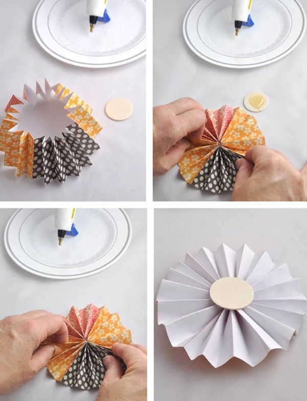 Esta es una idea de manualidades en papel fácil de hacer para niños. Todo lo que los niños tienen que hacer es tomar una hoja de papel de colores, doblarla en zig-zag y colocarla en forma circular. Una vez que se haya fijado, puede sellarlo en la parte posterior con un pequeño trozo de fieltro o cojín de respaldo. Puede hacer tan bonitos abanicos con una sola hoja de colores o utilizar hojas de papel de diferentes tamaños o colores. Intente usar una pistola de pegamento caliente para sellarlo.