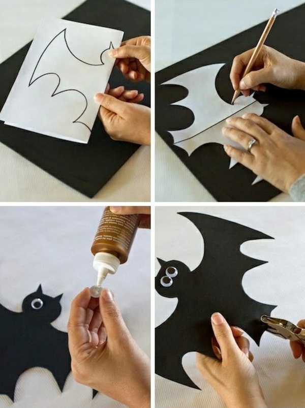 Este murciélago es una embarcación espeluznante. Seguramente esta es una elección perfecta para Halloween. Puedes hacer este murciélago artesanal de papel usando un papel cuadriculado negro. Empiece por doblar el papel por la mitad. Obtenga una copia impresa de una plantilla de un murciélago en un portal de Internet. Ahora calquelo en la parte posterior del papel cuadriculado negro. Recorta el murciélago del papel cuadriculado negro. Ahora tome dos grandes ojos saltones y colóquelos en su lugar en la cabeza del murciélago. Haz un puñetazo en la cola del murciélago para ayudar a colgarlo. Puedes hacer muchos de estos murciélagos y colgarlos como parte de tu decoración de Halloween en casa o en la escuela.